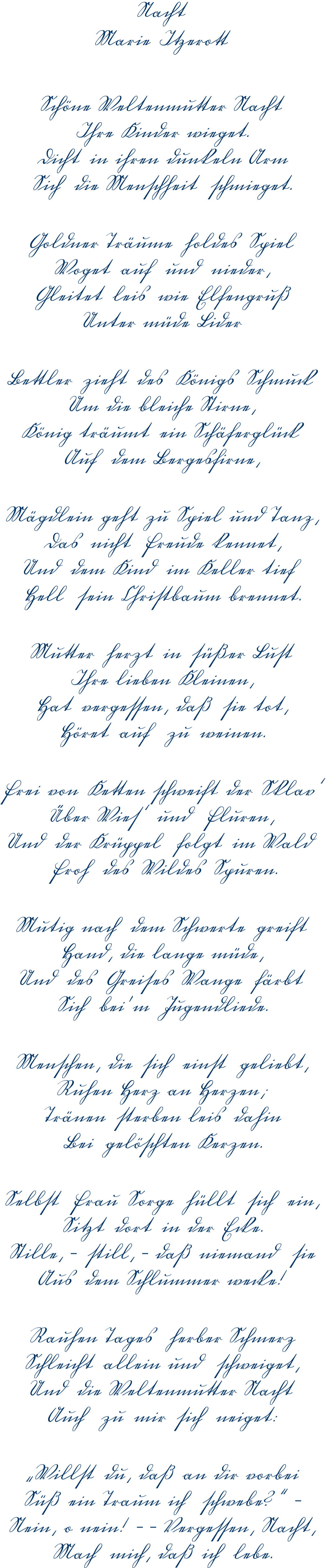 Stille, - still, - daß niemand sie