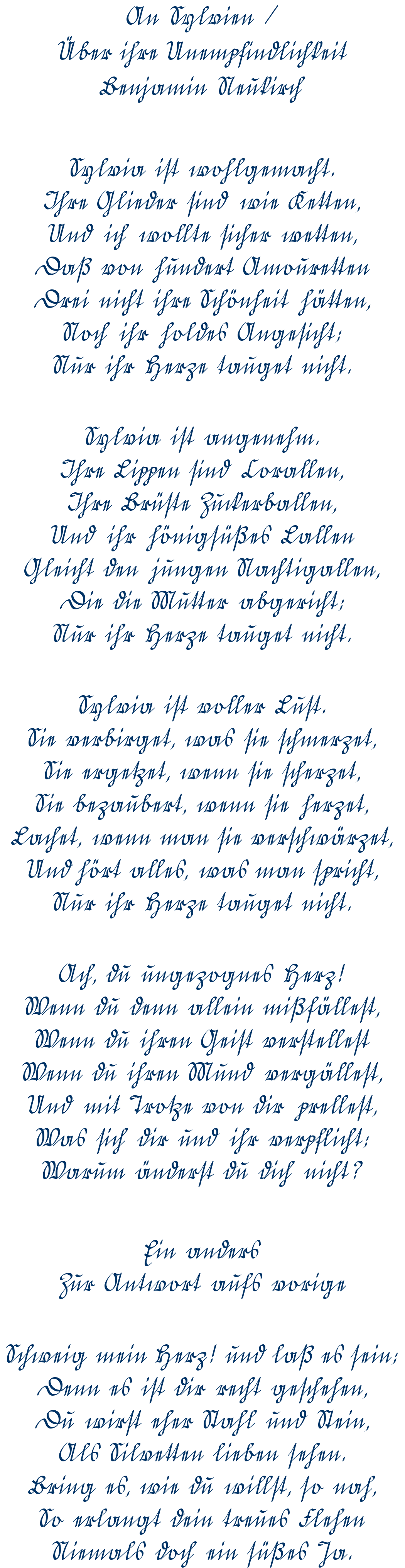 An Sylvien / Über ihre Unempfindlichkeit - Benjamin Neukirch