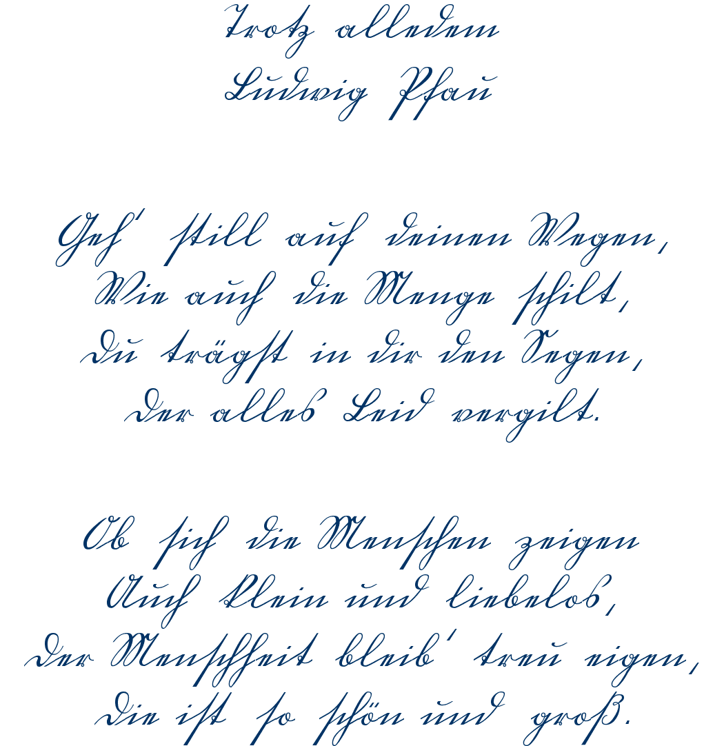 Ob sich die Menschen zeigen Auch klein und liebelos, Der Menschheit bleib' treu eigen, Die ist so schön und groß.