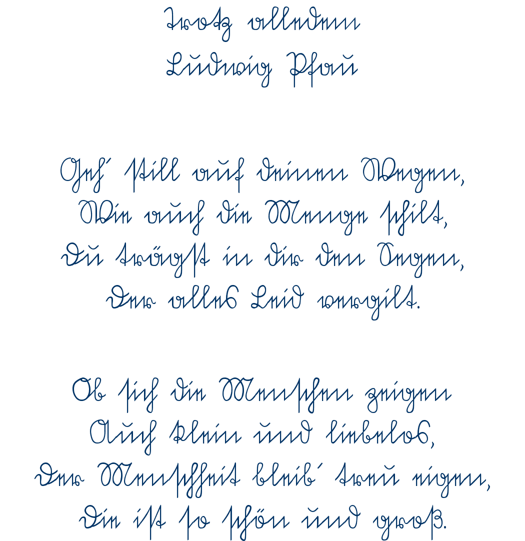 Ob sich die Menschen zeigen Auch klein und liebelos, Der Menschheit bleib' treu eigen, Die ist so schön und groß.