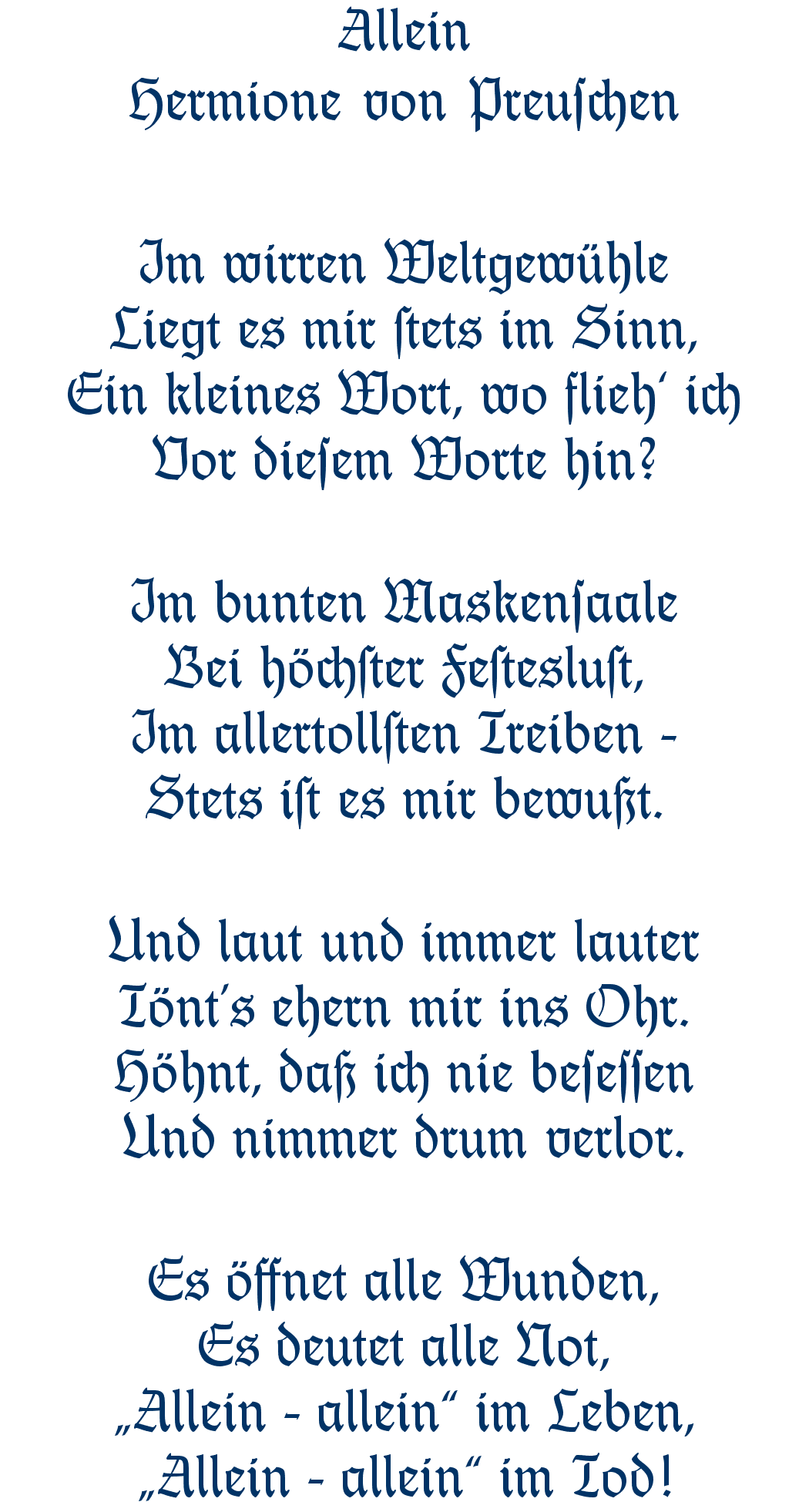 Allein - Hermione von Preuschen