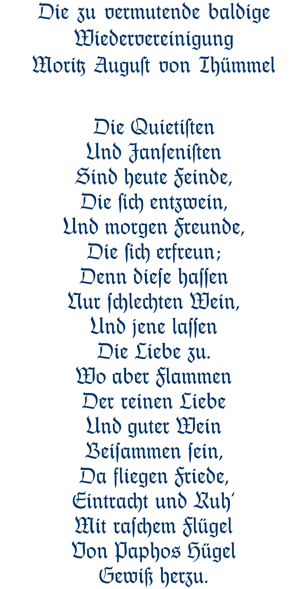 Die zu vermutende baldige Wiedervereinigung - Moritz August von Thümmel